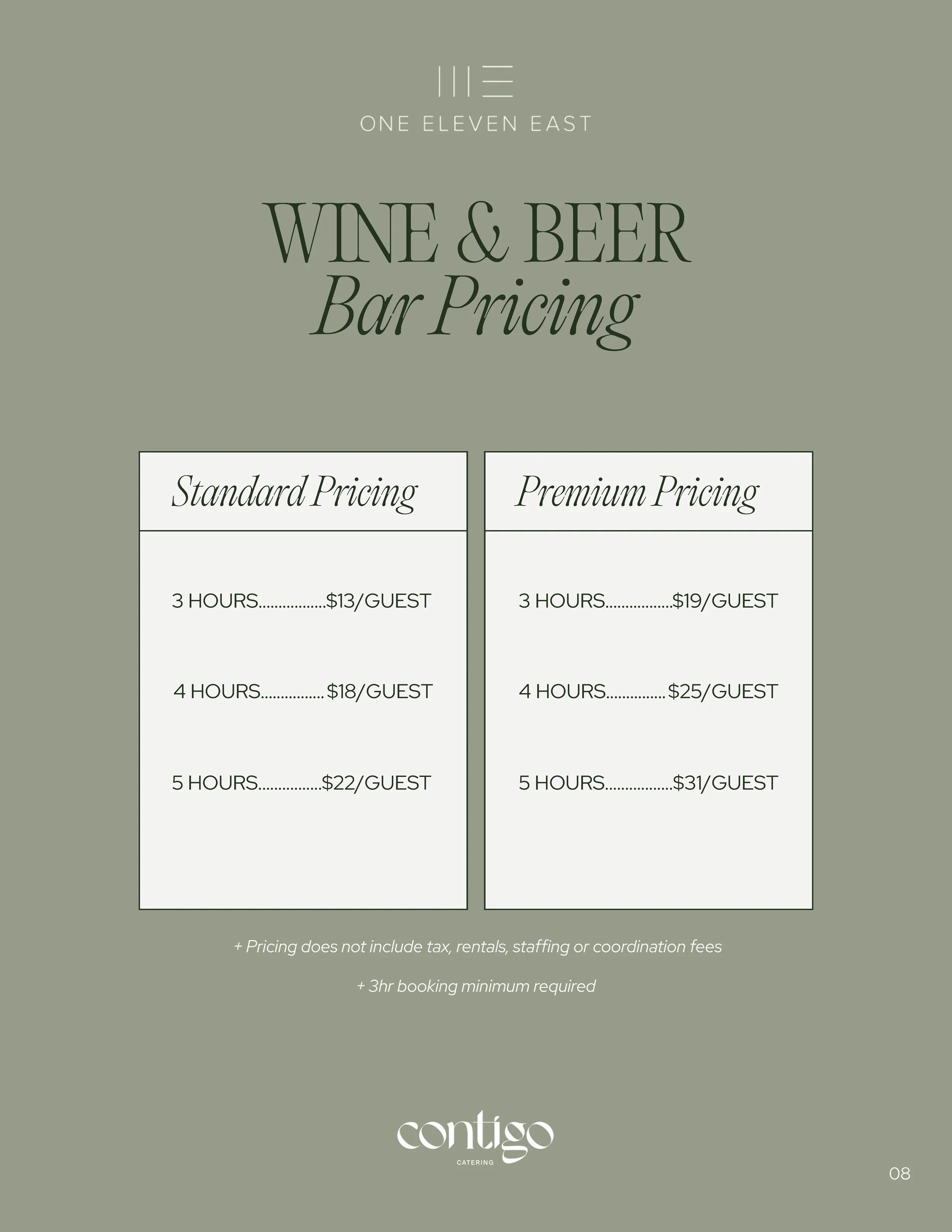 Standard Full Bar for 3hrs of Service