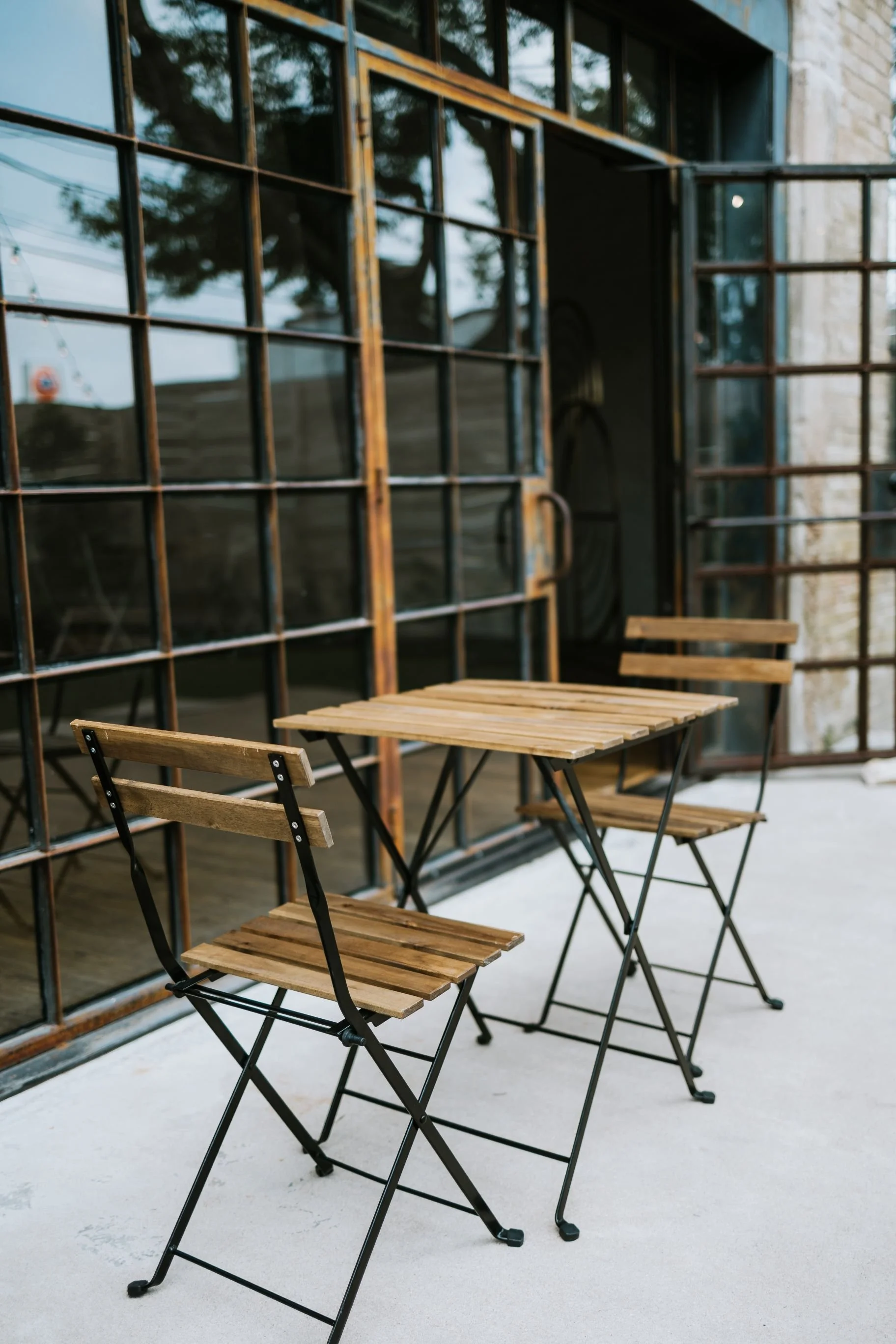 Three café-style bistro sets (one table with two chairs each) perfect for cocktail hour or casual seating moments.