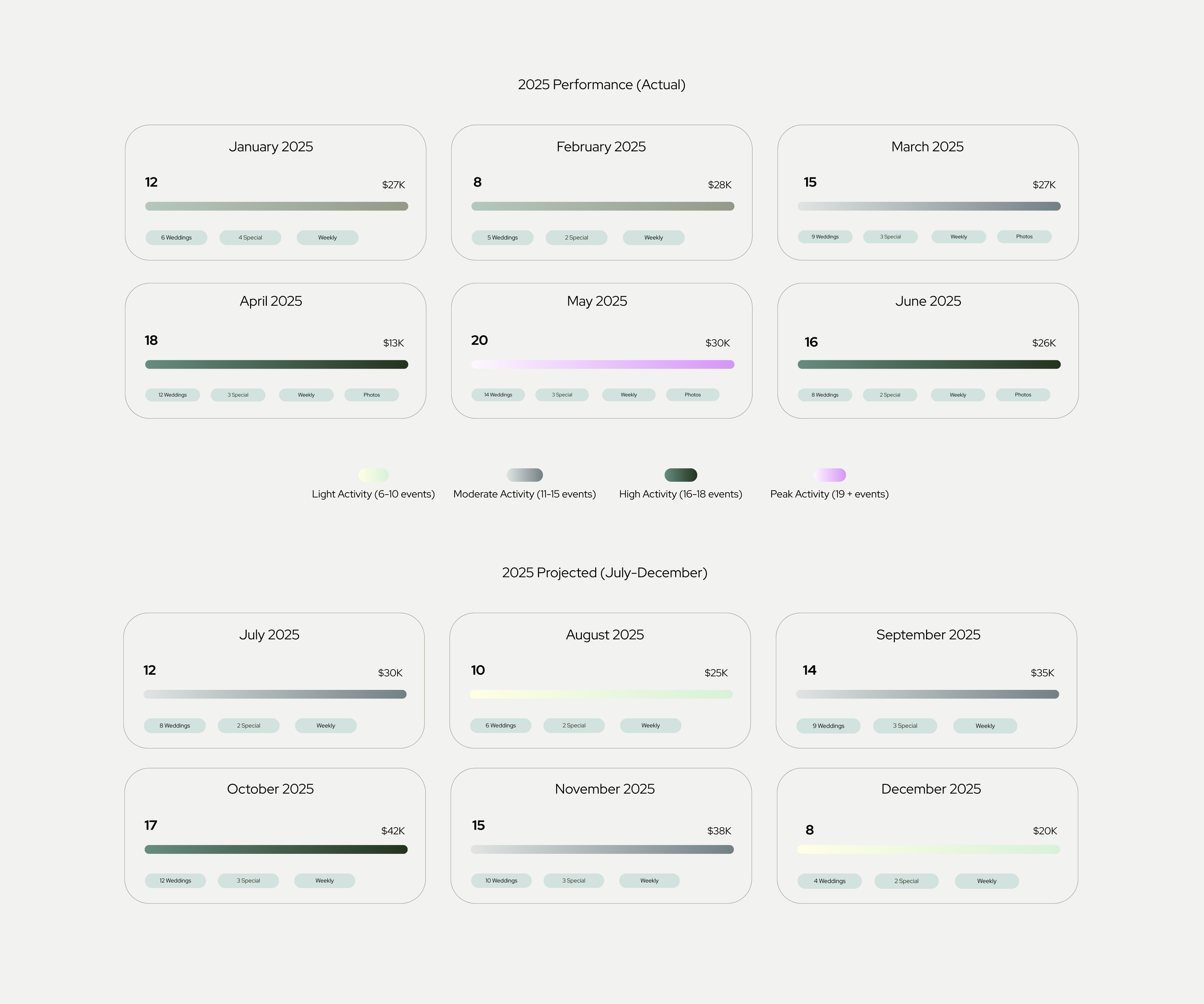 Weddings, Corporate Events, Milestone Celebrations, Photo/Video Studio, Workshops, Community Gatherings